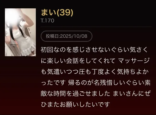 グラマラス 【まい】さんの口コミです ばいばい👋は、さみしいから、またね?💖💖 estama.jp/shop/35333/cas… #エステ魂 #メンズエステ #メンエス #口コミ #セラピスト #マッサージ #応援 pic.x.com/bk0CzjPUtY