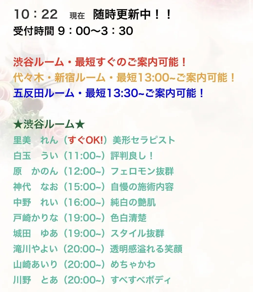 おはようございます☀奈緒美🌺です。 土曜日はご予約🈵了ありがとうございました💕お兄様に癒されるって言われるけど私がいつも癒されてる(〃ω〃) 昼職も今日頑張ればおやすみ!本当忙しいでも楽しい笑メンエスも楽しい😃 私って幸せ者かもー笑 30日(月)20:00から出勤します!ご予約お待ちしてますね https://t.co/Kc9e655Cbz
