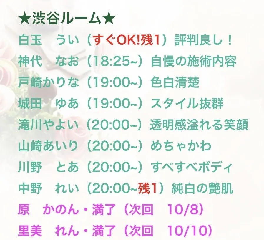 池袋メンズエステ drewSPA 現在の出勤 🌸さくら 13:00-19:00 @saku_6o5u 💗ここあ 🈳14:00-18:00 @kokoa_6do5bu 🍑もも 14:00-22:00 @momo_6dogobu 🍓さや 15:00-23:00 @saya_6o5oc 電話 📞070-3150-7815 DM・LINE問い合わせもお待ちしております🎵 #池袋メンズエステ #メンズエステ東京 pic.x.com/iAHeooYPZM