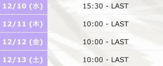 明日からの出勤は! 12/9 12:00-17:30 12/10-13 【帯広】 次は帯広にお邪魔します、年内最後の帯広! なかなか行けてないところのお兄さん方にも次の週とかでご挨拶できたらいいな🥹 #メンエス #メンズエステ #札幌メンズエステ #北見メンズエステ pic.x.com/CarA9VHCcS