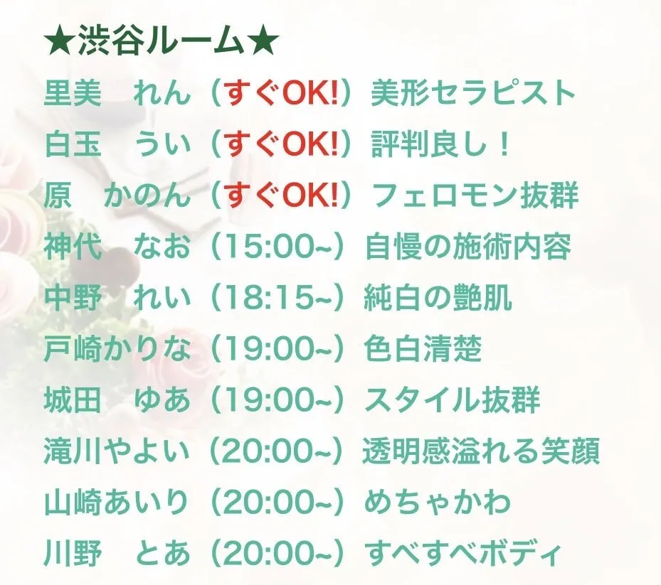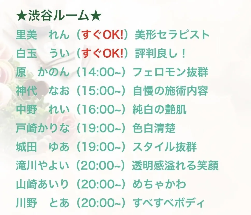 金曜日!本日も人気セラピスト達が多数出勤します!! 朝は10:00からご案内可能です♪ 渋谷駅近くでメンズエステをお探しならまずはお気軽にお問い合わせ下さい😊 皆様のご来店をお待ちしております! https://t.co/BlGeDBNEes